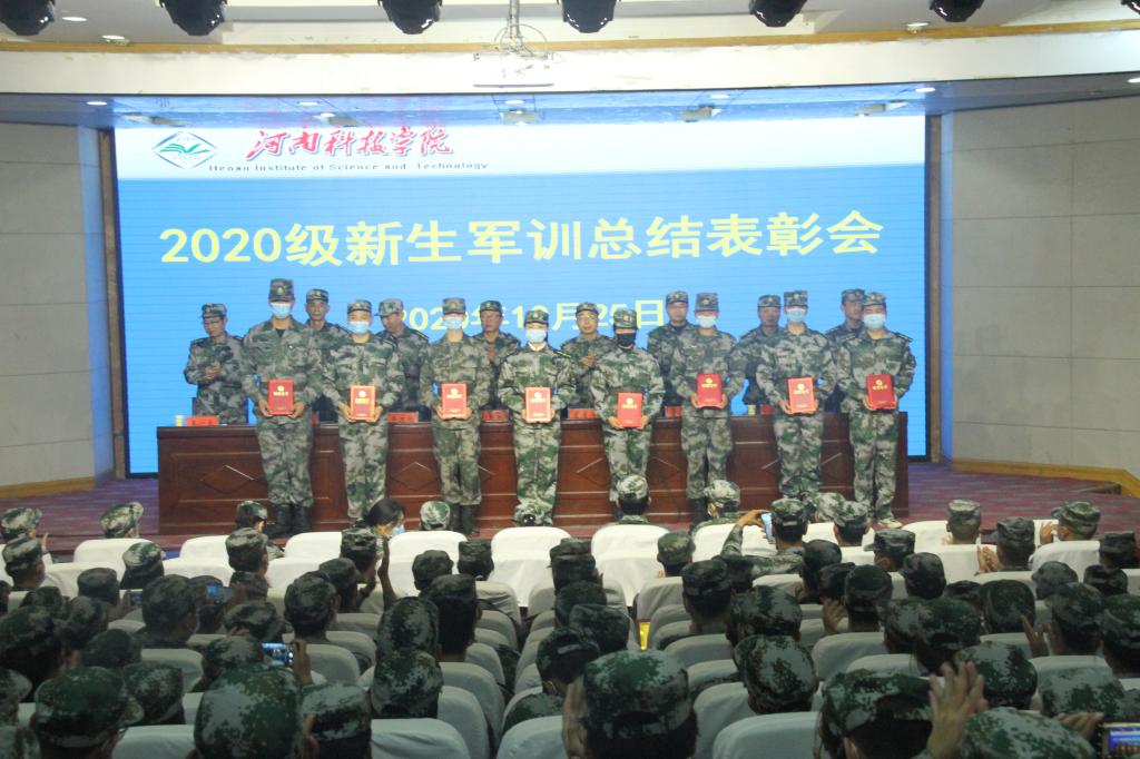 2020级新生军训总结表彰会在高亢的校歌声中圆满落幕。