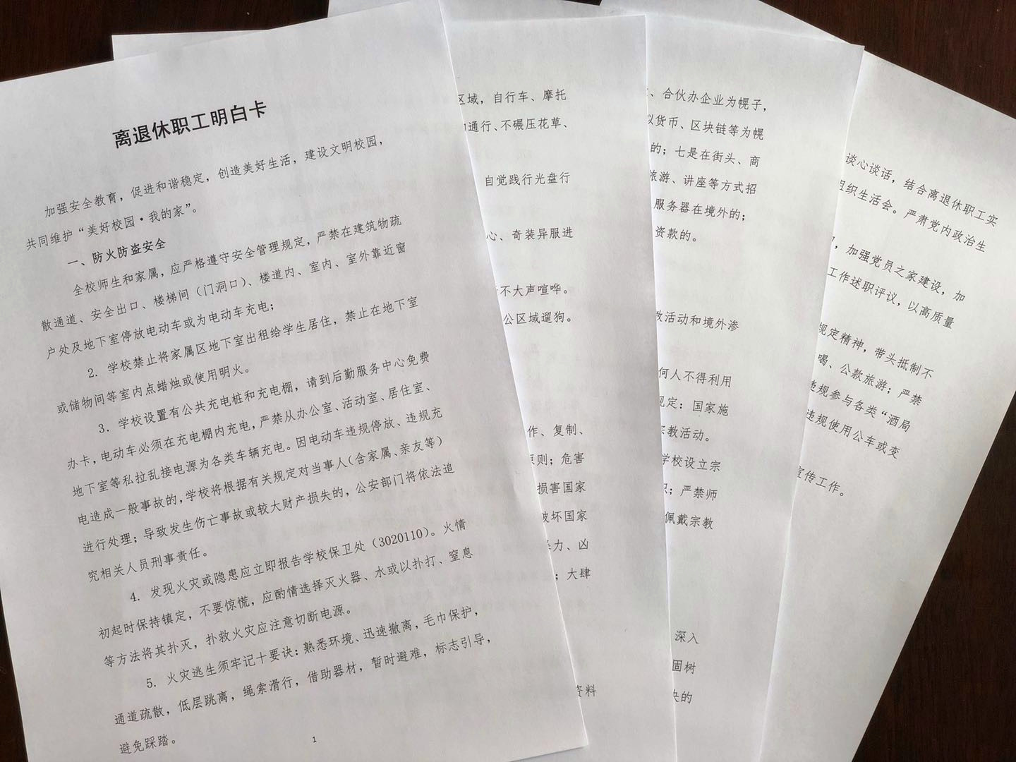 金秋十月,双湖微波荡漾,科院枝繁叶茂。伴随着小石坝们的军训,学校各项工作有序进行,离退休职工管理处认真学习贯彻落实学校下半年重点工作和党建工作要点,以习近平新时代中国特色社会主义思想和十九大精神为指导,结合离退休老同志实际,创新做好学习管理和服务工作。编写离退休职工明白卡,将河南省委十届六次全会精神、全国宣传思想工作会议精神、全国教育大会、高校民族宗教政策、《高校党建工作重点任务》、《中国共产党纪律处分条例》等要点整理,将学校近期工作重点、开展安全对话及谈心活动、文明十条、治理圈子文化及开展党风廉政教育、消防安全教育、交通安全教育、网络安全教育、防诈骗防传销防非法集资等写入明白卡,通过召开全体离退休职工大会、总支委员会、办公会、支部“三会一课”、组织生活会等等多种形式,使全体离退休职工明白国家时事政策、关注学校事业发展、促进和谐安全稳定。结合老同志居住和身体实际,创新在所属支部党员中开展“祝福祖国一句话”活动,把老同志情系祖国昌盛、心系发展之声通过简单明了的一句话表达出来,采用微信、微视频、微语音、短信、书写、口述等适合不同职工方便使用的多种途径、多种形式展示出来,各支部参加热情高、效果好,一句句祝福祖国的生动语言体现了伟大祖国的发展成就,体现了中国精神、中国力量、中国梦想 ,体现了社会主义核心价值观,体现了广大离退休职工的爱国爱校精神。