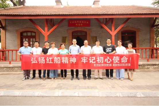为深入学习贯彻习近平新时代中国特色社会主义思想和党的十九大精神,落实学校《关于开展“我为党旗添光彩”活动的通知》精神,7月11日,离退处党总支第五党支部组织联合第三党总支审计处党支部党员赴红色教育基地——河南首个党组织“中共洛阳组”诞生地纪念馆和爱国主义教育基地焦作寨卜昌村参观展览,学习先辈们的英雄事迹、重温入党誓词,开展“弘扬红船精神,牢记初心使命”主题党日活动。