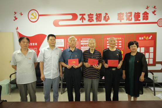 七一前夕,离退处党政领导及各支部书记走访慰问了党龄在60年以上的二十位老党员,为他们送上“政治生日”贺卡,庆祝中国共产党成立99周年。7月1日上午,离退处党总支及各支部开展“不忘初心使命、争当出彩先锋”主题党日活动,表达对党生日的美好祝愿,营造浓厚的党建氛围。各支部书记、党小组长、三位六十年以上党龄的老党员代表、全体工作人员参加了会议。