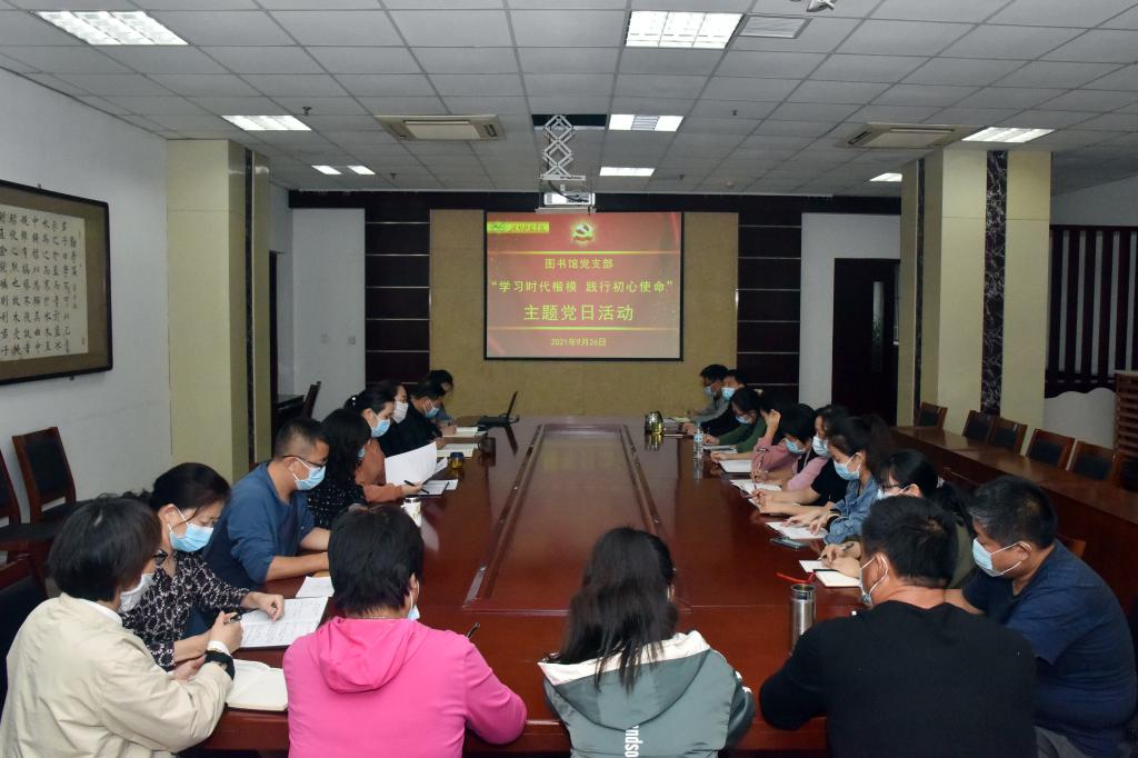 为深入传播师德故事,继承黄大年精神,弘扬高尚师德,引导和激励广大党员坚守初心使命,9月26日图书馆党支部在小会议室开展“学习时代楷模 践行初心使命”主题党日活动。活动由党支部副书记史新伟同志主持,全体党员参加活动。