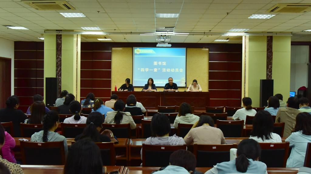 为了进一步学习贯彻习近平新时代中国特色社会主义思想,把主题教育成果落实到履职尽责使命担当上,提升全体职工服务意识和服务能力,6月1日,图书馆在读者培训室召开“四学一查”活动动员会。图书馆全体职工参加会议。会议由馆长赵坤主持。