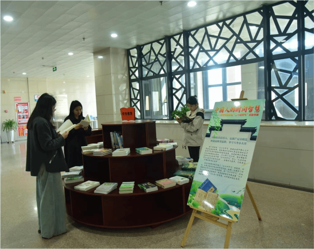 春风激荡于时行,弦歌不辍书香浓。从节气、天气的自然现象中感悟人生哲理是中国的独特文化。为让读者在阅读中传承和弘扬中华优秀传统文化,图书馆在二楼大厅举办了“中国人的时间智慧——二十四节气”主题书展,吸引了众多读者驻足品读。