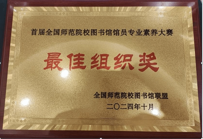 近日,由全国师范院校图书馆联盟主办的首届全国师范院校图书馆馆员专业素养大赛结果揭晓。图书馆在此次大赛中荣获4项奖项:余建芮荣获专业知识答题二等奖,吕婷和孙凌云荣获专业知识答题三等奖;图书馆荣获最佳组织奖,全国仅10个单位获此殊荣。