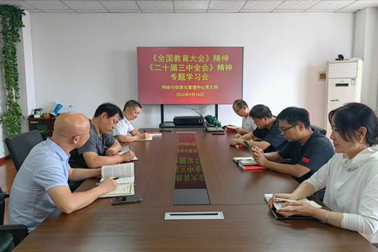 9月18日上午,网络与信息化管理中心党支部在电教综合楼1002党员之家召开了党的二十届三中全会和全国教育大会精神专题学习会,中心全体人员参加了学习。会议由党支部书记齐安国主持。