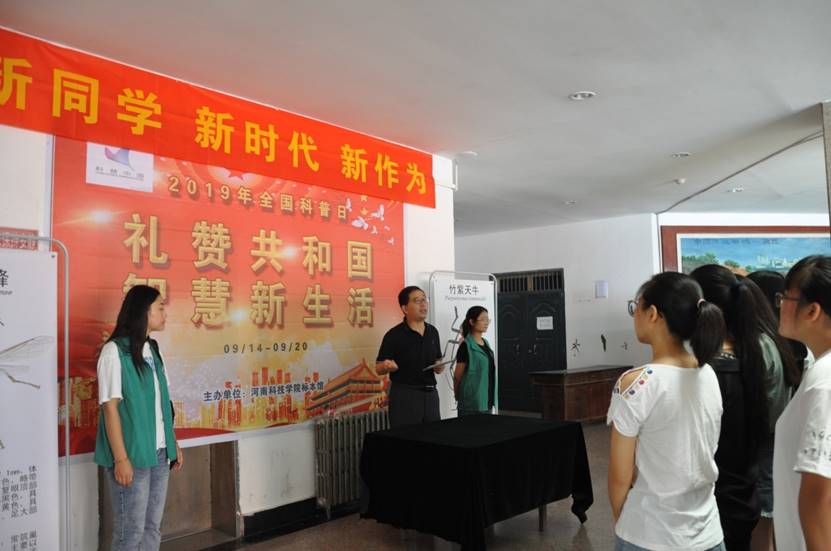 为深入贯彻习近平新时代中国特色社会主义思想,贯彻落实党的十九大和十九届二中、三中全会精神,推动“创新、协调、绿色、开放、共享”的发展理念深入人心,推动全面提升全民科学素质,促进科学普及与科技创新协同发展,按照《中国科协、中央宣传部、教育部、科技部、农业农村部、国家卫生健康委关于举办2019年全国科普日活动的通知》的总体安排,河南科技学院标本馆组织开展了2019年“全国科普日”系列活动。