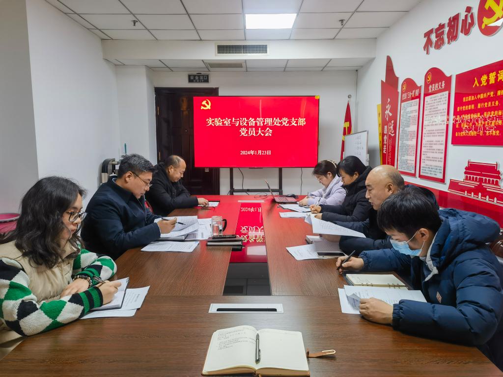 1月23日下午,实验室与设备管理处党支部在办公楼1015会议室召开支部党员大会,部门全体党员参加会议。会议由党支部书记李勇超主持。
