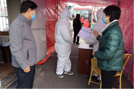 1月26日,校第五党总支书记乔有职,机关五分会工会委员、校医院党支部书记魏军鹏在校医院院长张兰荣的陪同下到新乡汽车东站防疫检测点,慰问疫情防控期间值班值守的校医院医护人员。
