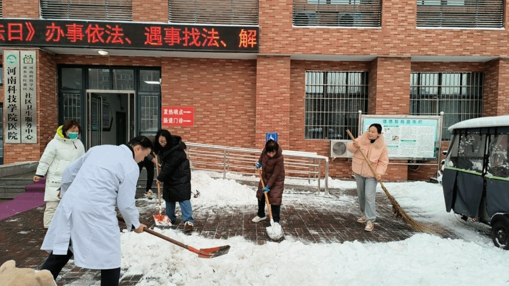 12月11日,2023年入冬以来第一轮最大范围雨雪来袭,为确保患者就医畅通,校医院积极响应,迅速行动,组织全体员工开展扫雪工作。