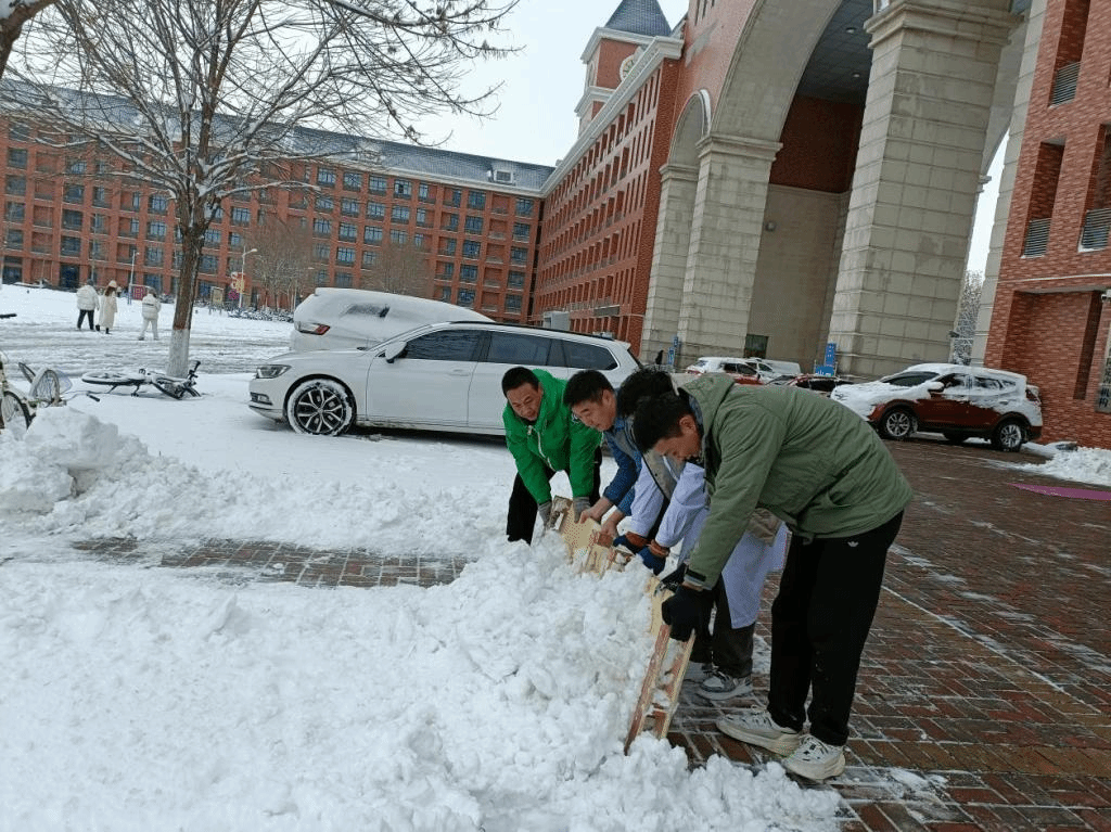 在扫雪过程中,校医院员工发扬团结协作、无私奉献的精神,顶着严寒,齐心协力完成扫雪任务。经过共同努力,8时30分左右,医院外道路、停车场积雪均得到及时清理,患者及家属就医安全得到有效保障。
