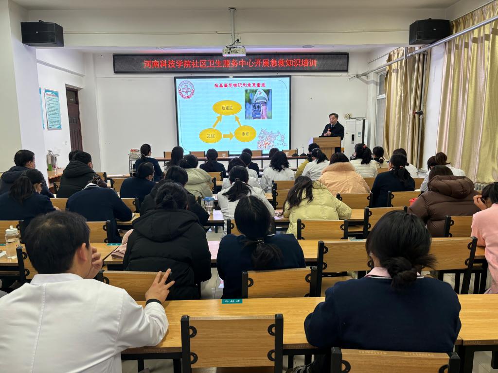 为进一步提升我院急救技术水平,1月18日下午,校医院邀请新乡医学院第一附属医院急诊科石金河主任,为我院职工开展急救知识培训,校医院全体人员参会。
