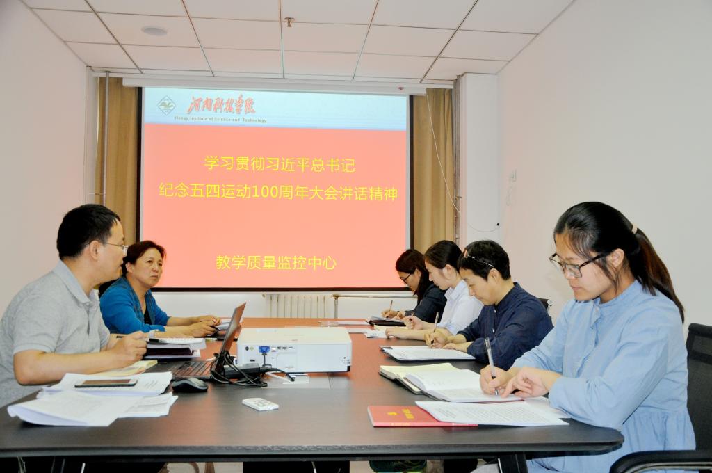 5月13日下午,教学质量监控中心党支部组织召开支部党员大会,深入学习贯彻习近平总书记在纪念五四运动100周年大会上的重要讲话精神。