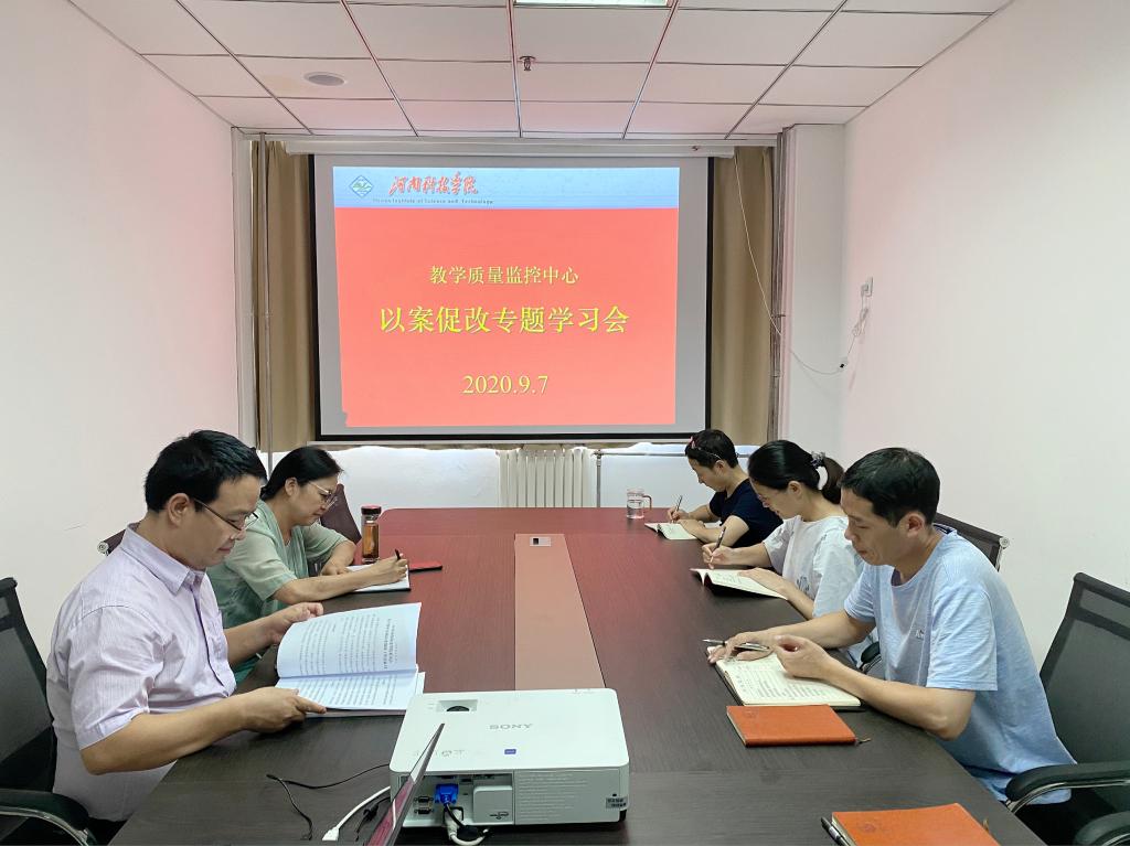 9月7日下午,教学质量监控中心在行政楼412会议室召开以案促改专题学习讨论会。中心全体成员参加,会议由中心副主任赵高丽主持。