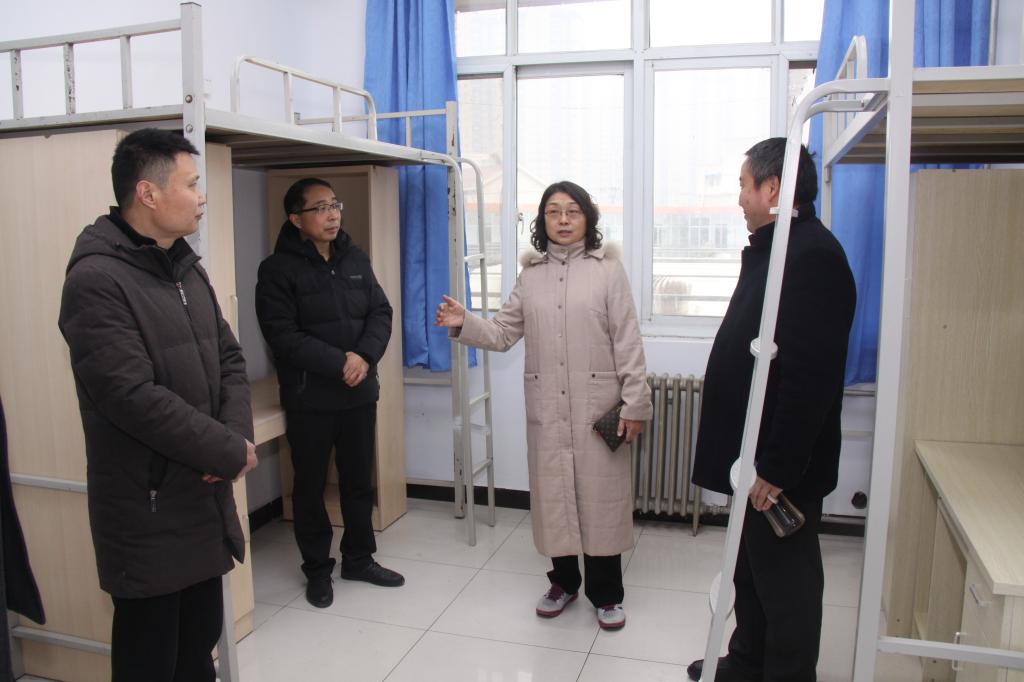 2月26日下午,副校长王霞在学生处、国际交流与合作办公室、后勤服务中心等部门相关人员陪同下,先后在科研楼男生宿舍和11#女生宿舍,认真查看物业服务、水电设施、住宿环境及安全等准备情况。要求各部门密切配合、细致工作,做好相关准备工作,努力营造一个温馨、和谐、舒适、安全的学习生活场所,以崭新的面貌迎接2019级国际生的接待和入住工作。(后勤服务中心)