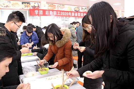 为迎接2020年春节的到来,感受佳节喜庆的热闹气息,1月13日上午,校团委、学生处、保卫处、后勤服务中心等部分干部职工,以及院系党团副书记、辅导员等80余人,在第一学生餐厅开展“迎新春、暖人心”包饺子联谊活动。