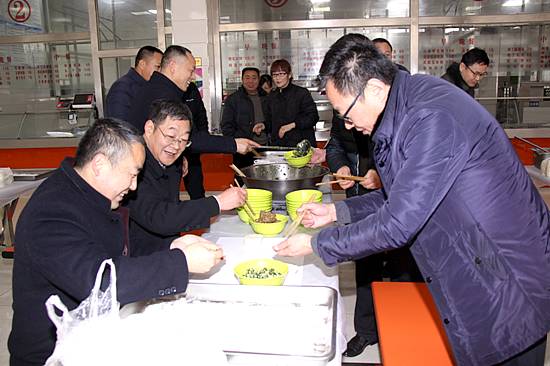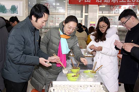 校领导与大家一起包饺子