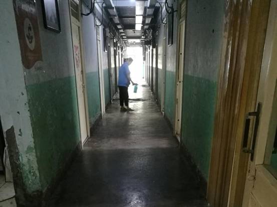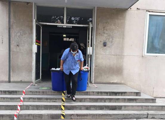 宿舍保洁人员清理一次性饭盒等生活垃圾