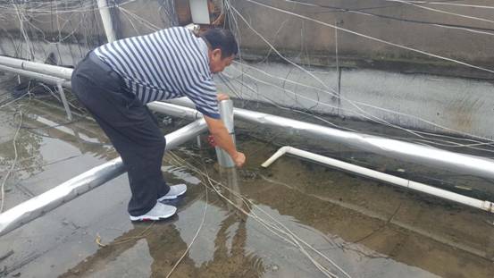 校长李成伟(左二)现场查看排水口