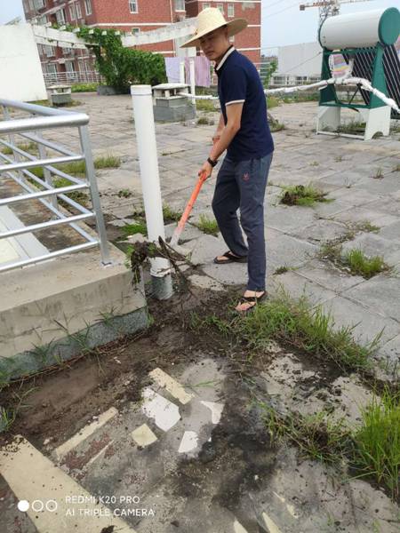 清理屋顶杂草并打除草药