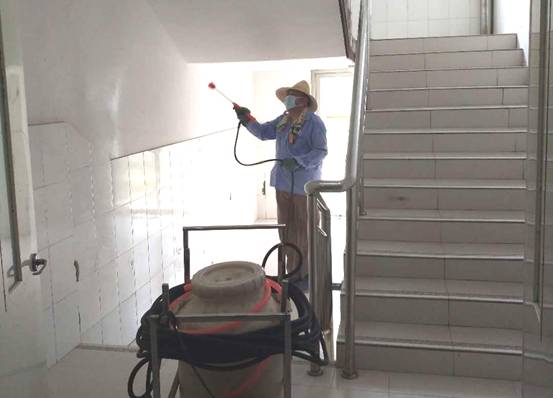 中心认真落实疫情防控卫生清洁消毒相关要求,在校园内开展消杀工作。特别是对学生公寓、实验楼、教学楼、行政办公区、图书馆、公共卫生间、会议室、电梯间、等63215平方米重点部位组织实施40次消毒消杀。确保全方位、全覆盖、无死角。