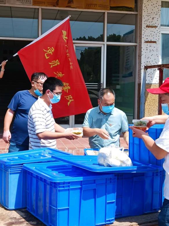 后勤服务中心党员干部为坚守在抗疫复学一线的师生发放饭菜