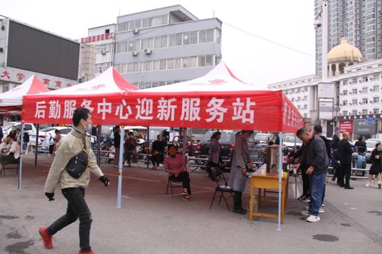 后勤服务中心在校门口设置爱心服务站为新生和家长免费提供茶水