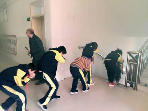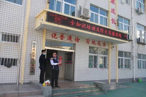 9时30分,演练开始,随着消防报警声的响起,各班主任、楼层指挥人员迅速到班到岗,沉着冷静地组织学生捂住口、鼻,弯腰低头,紧急撤离教学楼,安全、快速、有序地疏散到学校操场。整个演习用时3分36秒。接着,省消防协会赵教官为全校师生讲解了消防安全知识及灭火器的正确操作步骤与要领,并对消防灭火器“提、拉、握、压、喷”的动作要领逐一做了示范。在讲解的过程中,教师和学生还参与了灭火器灭火演练。