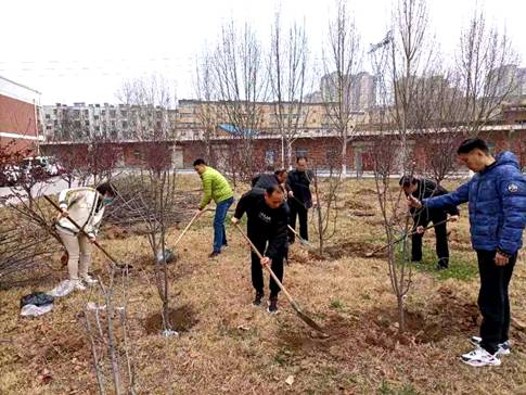 活动开始,后勤服务中心第三党支部群工委员栗志录以“我为校园添春意”为题为大家上微党课。随后大家拿起手中的工具,扶苗下坑、下铲埋土、踩实浇水......一棵又一棵海棠树、白蜡树、红叶李、银杏树,在大家的欢声笑语中纷纷挺拔站立。经过2个多小时的奋战,大家不怕辛苦、不怕劳累,齐心协力,以饱满的热情保质保量完成了校园树苗补栽任务。
