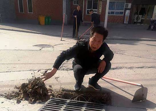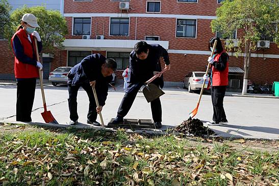 校园内的排污水井大都裸露在道路两旁,面对狭窄的排污水井内的垃圾,大家相互协作,你用铁钩勾我用铁锹掏;针对井内有网线无法用铁锹掏的,同志们蹲在地上用手掏。面对恶臭,在太阳底下,大家干得满头大汗,没有一个人怕脏怕苦怕累,没有一个人退缩。