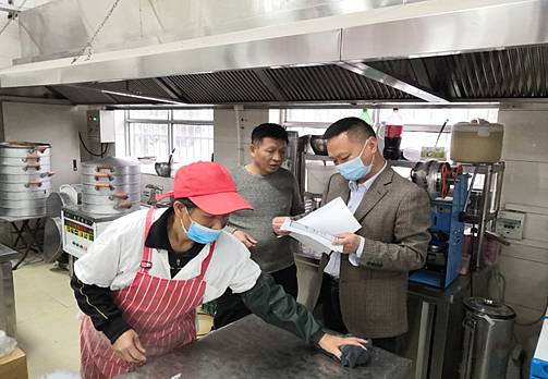 工作人员按照分组分工,分别到第一、第二、第三学生餐厅和教工餐厅开展检查。他们一边检查,一边记录,一边拍照取证,还不时地询问商户有关情况,并对现场发现的餐厅卫生、食品留样、原材料溯源、原材料贮存等关系食品安全的风险隐患以及消防安全、人身安全隐患等提出整改要求和处理意见。