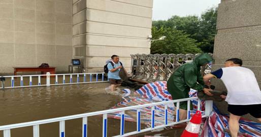 闻“汛”而动,靠前指挥。第一时间成立后勤防洪抢险领导小组,由中心主任冀红举、五总支书记乔有职任组长,中心副主任游红伟、魏军鹏、刘晓杰任副组长,相关科室负责人为小组成员。领导小组下设校门防汛组、排涝防汛组、电控防汛组、餐饮防汛组、家属楼楼栋防汛组、信息统计组、防疫消杀组、环境整治组等8个工作组。领导小组先后下达汛情通知59条,各工作组分工明确、各尽其责,真正做到了推进有力、落实到位。