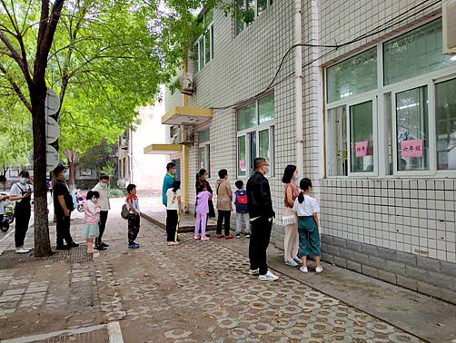 领取时,家长凭借健康绿码,测温正常后进入校园,到指定地点领书,领取人员全程佩戴口罩、间隔1米距离等待,班主任负责发放,发放过程高效、安全、有序。