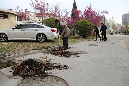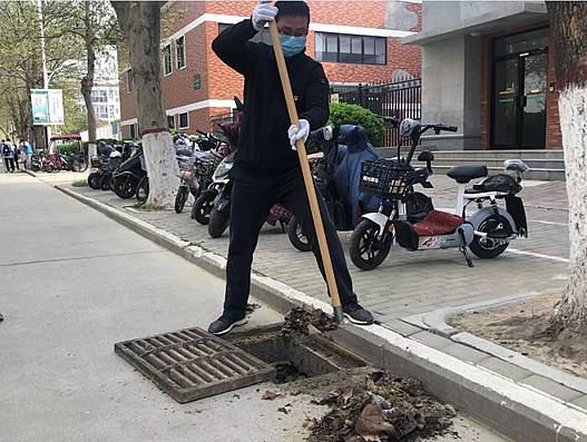 各支部按照分工,分区域对全校雨水井进行清理。大家分别用铁锨铲、钩锨钩、叉子挖,干得热火朝天。经过共同努力,全校600多个雨水井全部被清理干净,为学校今年的防汛工作打下了坚实基础。