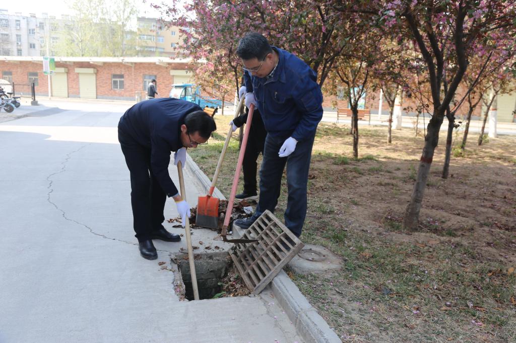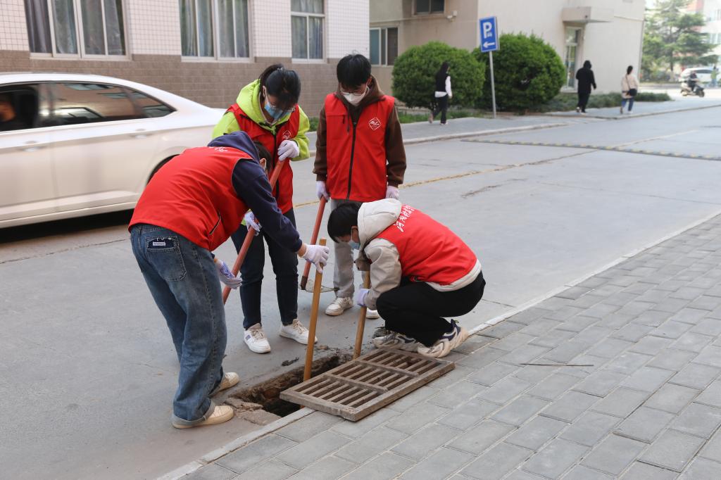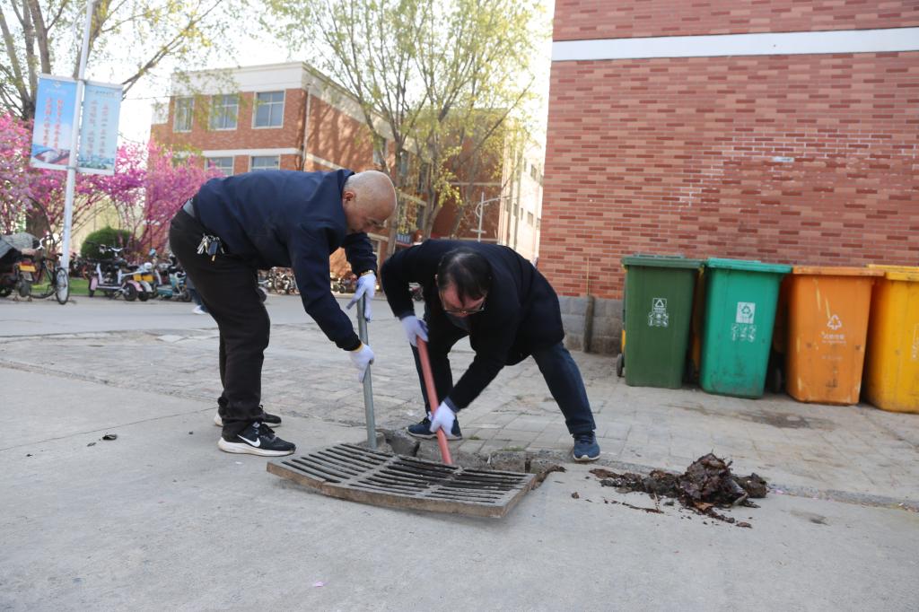 活动开始后,大家分工协作、相互配合,有的掀雨水篦,有的挥锹挖土,还有的用手清理雨水井旁的烟头、树叶等堵塞,活动现场热火朝天。经过一番劳动,学校主干道旁的雨水井被全部清理干净,大大提升了校园雨水管网防汛排水能力。