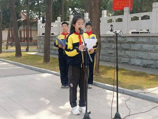 烈士纪念碑前,师生们在庄严肃穆、威武雄壮的国歌声中向烈士默哀并敬献花篮,表达对烈士们的无限追思与缅怀。少先队员、教师和幼儿园小朋友代表先后发言,寄托对革命先烈的哀思与敬仰,表达励志报国的决心与信念。师生们还在烈士纪念碑前集体宣誓,坚定继承革命先烈遗志,奋发有为、报效祖国。