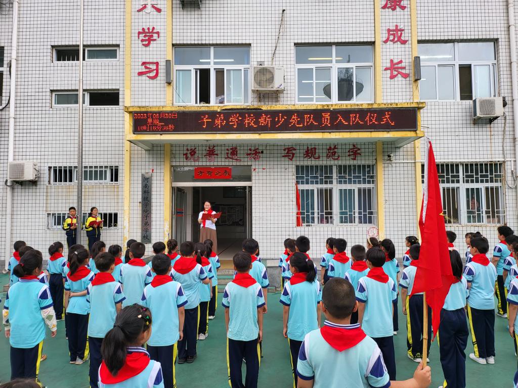 队旗高高飘扬,红领巾系满理想。5月30日上午,河南科技学院子弟学校举行了“学习二十大 争做好队员”少先队新队员入队仪式。