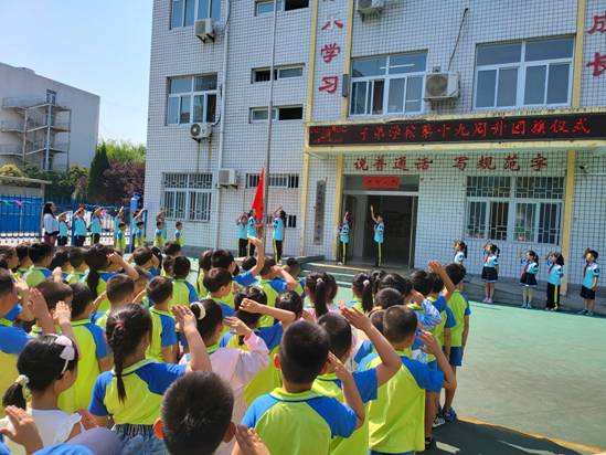 首先,小朋友们参加了子弟学校的升旗仪式。他们个个精神饱满,高举小手,朝着五星红旗升起的方向敬礼,并跟随着哥哥姐姐们一起齐唱国歌,聆听国旗下讲话,体验作为一名小学生在升旗时的庄严与肃穆。