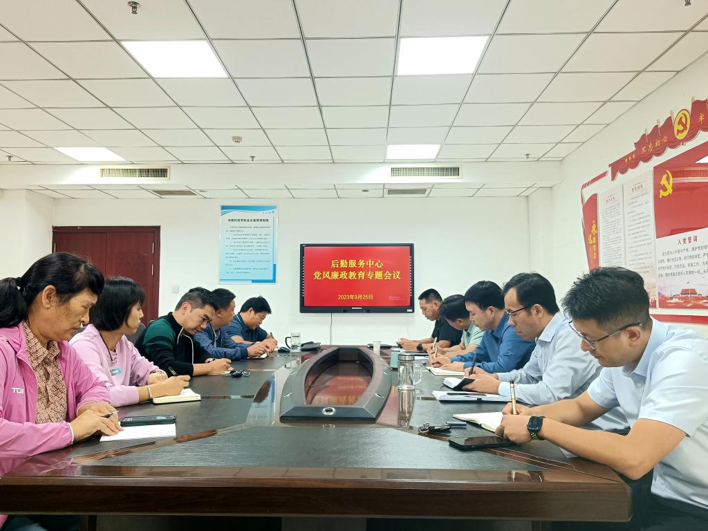 为了深入推进党风廉政建设,加强廉政责任,提升全体领导干部的廉政意识,后勤服务中心于9月25日下午在行政楼205会议室召开党风廉政主题教育会议,全体党委班子成员及正科级干部参加会议,会议由后勤服务中心党委书记龚俊朋主持。