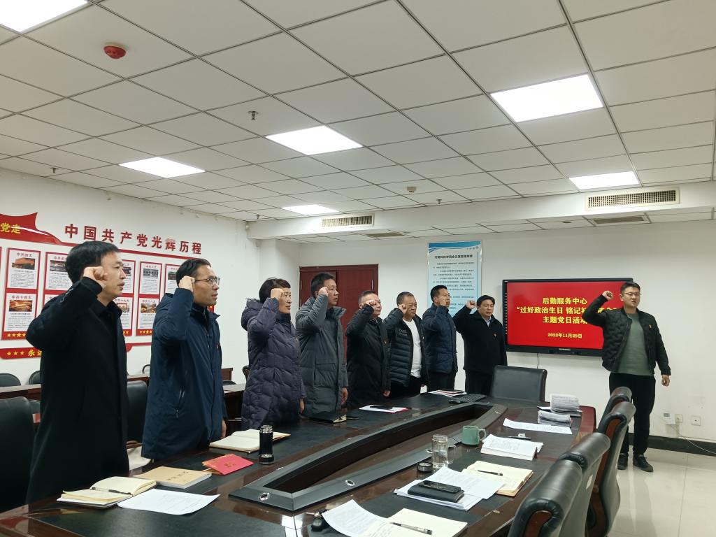本次活动包含“组织一次理论学习、重读一次入党志愿书、献上一份生日祝福、重温一次入党誓词”等环节。后勤服务中心主任王吉田领学了习近平总书记就“如何做一名合格党员”的讲话内容,从政治立场、纪律执行、品德修养以及作用发挥等四个方面阐述了如何成为一名合格的共产党员。四名党员同志分别重读了自己的入党志愿书,回顾了自己入党的初心和使命。龚俊朋、王吉田代表党组织为过“政治生日”的四名党员同志献上生日纪念卡。随后,与会全体党员面向党旗庄严地重温了入党誓词。