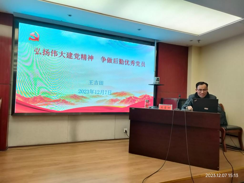 开班仪式后,后勤服务中心主任王吉田以“弘扬伟大建党精神,争做后勤优秀党员”为题开始第一讲,他从伟大建党精神的提出、形成的基础和条件、深刻内涵、与中国共产党人精神谱系的关系、积极践行和弘扬伟大建党精神五个方面进行了认真讲述,他要求全体党员积极践行和弘扬伟大建党精神,坚定理想信念、牢记初心使命、认真履行职责、抓好任务落实,扎实推动后勤各项工作开展,争做出彩后勤人。