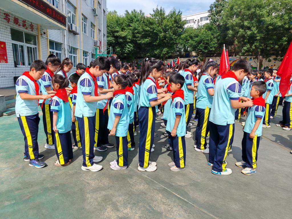 为了培养学生健康向上、积极进取的精神,增强孩子们对少先队组织的热爱,5月27日,子弟学校举行“红领巾爱祖国”少先队新队员入队仪式。