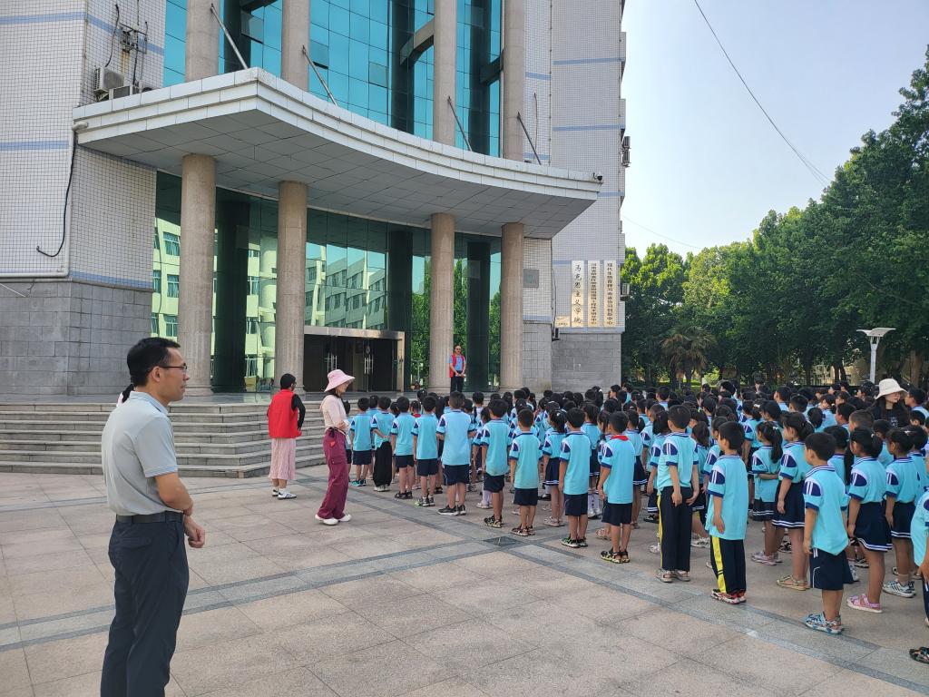 警报响起,演练开始,各班教师迅速带领学生按照指定路线下楼,到达一楼后高年级学生和低年级学生手拉手并排前行,在沿途老师的指引下有序、快速撤离到安全地带。疏导安置组成员在安置地点组织学生有序列队,班主任清点各班学生人数,并上报总指挥,确保所有学生安全撤离。整个撤离过程中各班行动迅速,安静有序。最后,副校长李广州作总结讲话。他指出,本次演练的各项任务均按预设情境完成,整个演练过程紧张有序,配合有力,取得了预期效果。