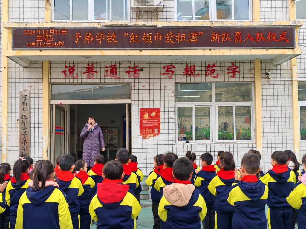 12月27日上午,子弟学校“红领巾爱祖国”新队员入队仪式在学校操场举行。