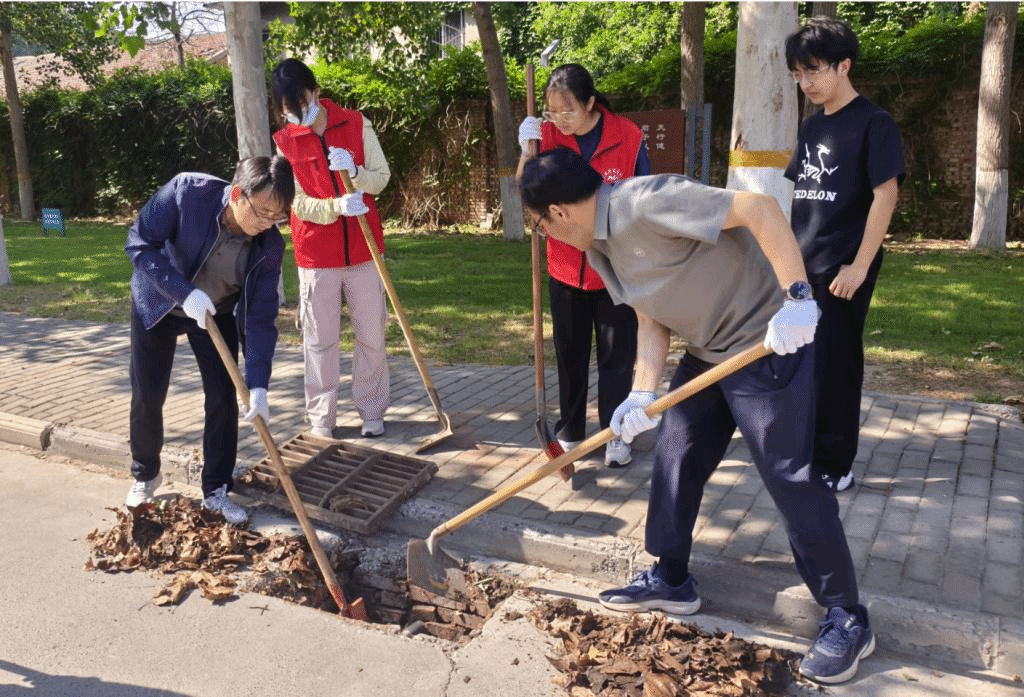 活动开始前,校团委书记张永波和后勤服务中心主任王吉田分别讲解活动意义和活动具体安排,后勤服务中心能源保障科负责人对志愿者们进行了安全操作培训,详细讲解淤泥清理及工具使用规范。在党员职工的带领下,师生们分为八组手持铁锹、撬棍等工具,对校园西校区教学楼周边、主干道排水沟进行清掏树根及杂物清理工作。大家不怕脏不怕累投身劳动,经过近3个小时的持续奋战,累计清淤近1000个雨水篦,有效预防了排水管网堵塞问题。