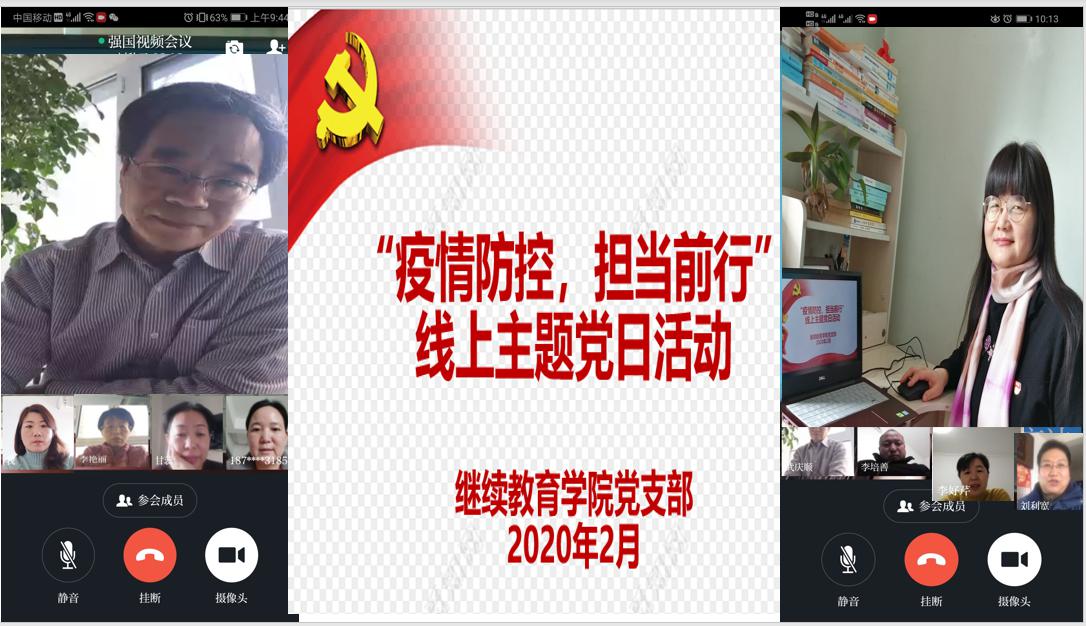 为进一步做好疫情防控工作,2月21日,继续教育学院党支部依托学习强国视频会议和微信平台,开展“疫情防控,担当前行”线上主题党日活动。
