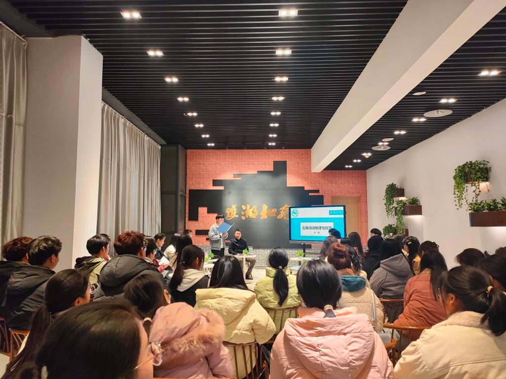 11月15日,第二十六期双湖知苑在图书馆五楼举行。本次活动以“古典诗词格律与欣赏”为主题,特邀文法学院副院长刘锋老师担任主讲嘉宾,60余名同学参加了活动。