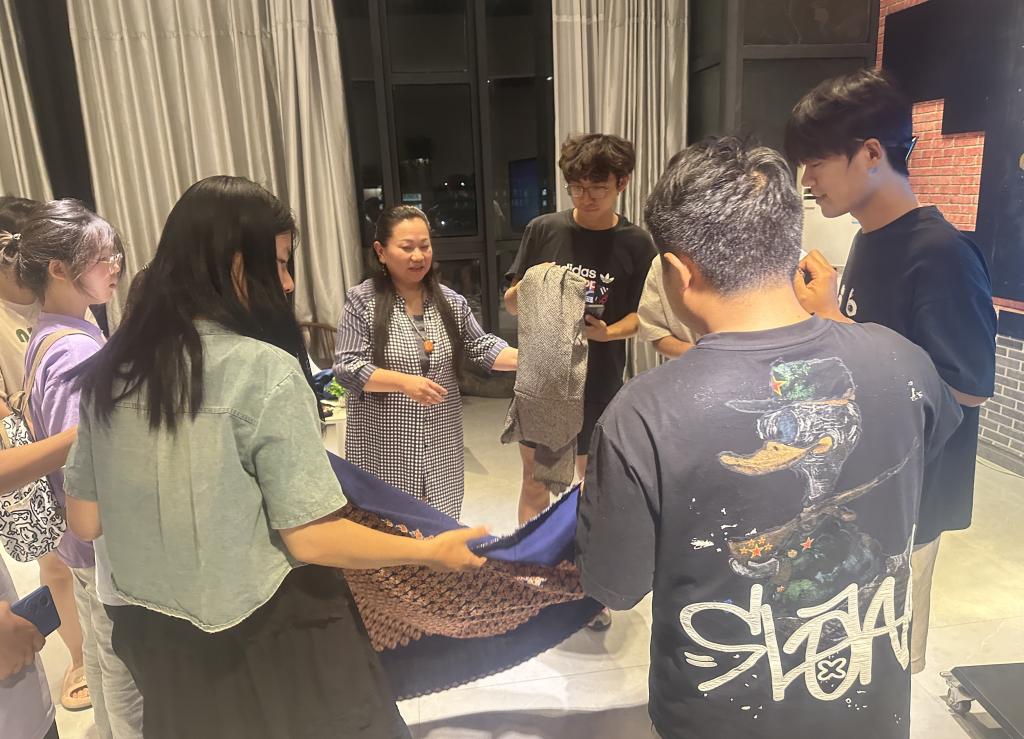 交流互动环节中,郭老师通过染缬产品实物,让同学们更为直观地感受染缬技艺的美好和创新,感知中国非遗文化的博大精深,并鼓励同学们融入非遗文化中,把优秀的传统文化遗产传承下去。