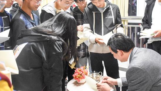 10月16日晚7:30,我校第十二期“双湖语轩”在大学生心理健康教育与指导中心举行。本期“双湖语轩”以“牢记初心使命,放飞青春梦想”为主题,邀请中国园艺协会南瓜分理事,河南科技学院园艺园林学院院长周俊国任对话嘉宾,来自各学院的26名学生代表参加了本次活动。周俊国以讲述自身求学经历为切入点,与在场学生分享了自己大学求学阶段、博士求学阶段以及工作多年来的人生经历和学习感悟。他告诫学生们要不忘初心,立足根本,兼顾全局,尽心尽力。鼓励青年学生要志存高远,努力奋斗,要在大学生活中养成良好的生活习惯,朴实的语言和生动的事例赢得在场师生的阵阵掌声。在互动环节,周俊国对学生提出的关于如何养成良好的学习习惯以及成长中的困惑、疑虑等问题进行了耐心地讲解和指导,并为在场学生签名、赠书。