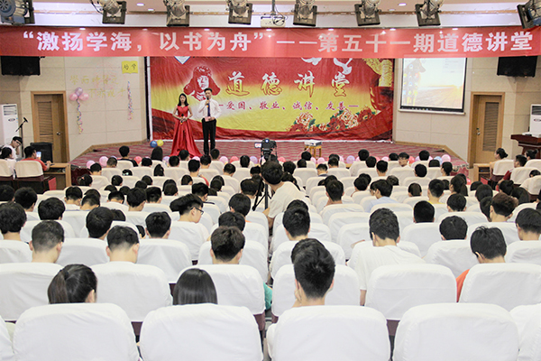 6月21日下午,由校文明办主办、信息工程学院承办的第五十一期道德讲堂在图教201举行。信息工程学院党政领导、全体辅导员和300多名学生参加了活动。