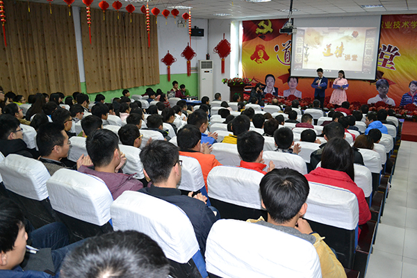 12月22日晚,由校文明办主办、高职学院承办的第四十四期道德讲堂在高职学院报告厅举行。高职学院党政领导、师生代表200余人参加了活动。